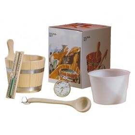 Obsahuje: drevené vedierko na polievanie s plastovou vložkou, objem 5l, drevená naberačka, kombinovyný teplomer - vlhkomer, presýpacie hodiny
